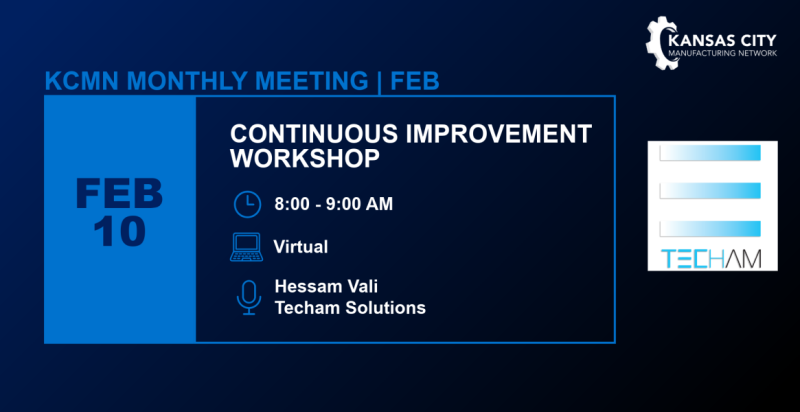 Join the us for a virtual meeting focused on Continuous Improvement with featured speaker Hessam Vali of Techam Solutions. Hessam brings deep experience in lean manufacturing and operational excellence, helping manufacturers reduce waste, improve performance, and build sustainable improvement systems. At Techam Solutions, he works closely with manufacturing teams to turn continuous improvement concepts into practical, repeatable actions on the shop floor. This session will share real world insights and approaches manufacturers can apply to strengthen processes, drive efficiency, and support long term competitiveness.